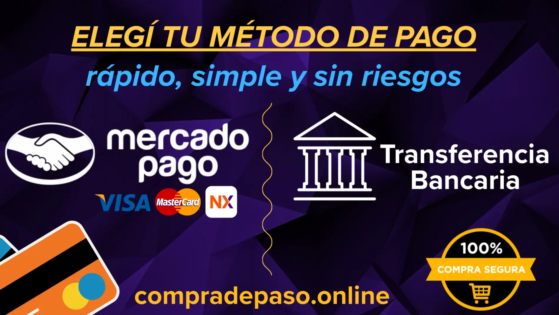 Aceptamos diferentes medios de pago para que elijas el que mejor se adapte a vos, con la tranquilidad de que tu información está protegida en todo momento.